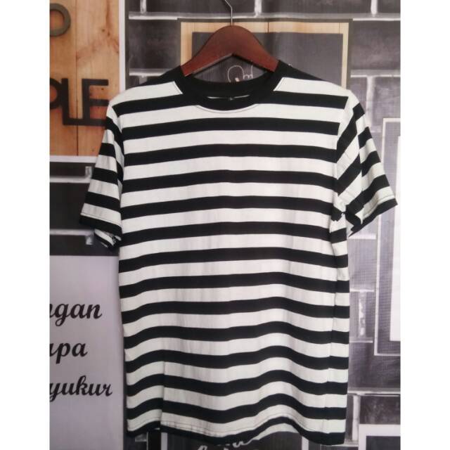 Baju kaos polos garis hitam putih big stripe black lengan pendek.